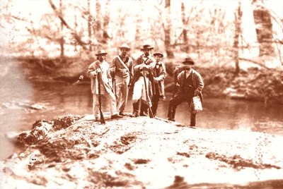 Drawing of the 1886 victims at Coffin Rock, from McClory's Illustrated.[2]